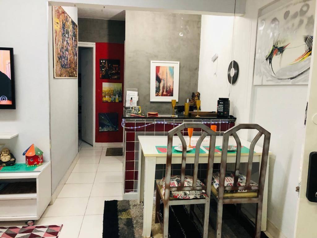 Apartamento de 50m, reformado, 2 quartos, banheiro social, cozinha, area de serviço, sala em 2 ambientes, 1 vaga.