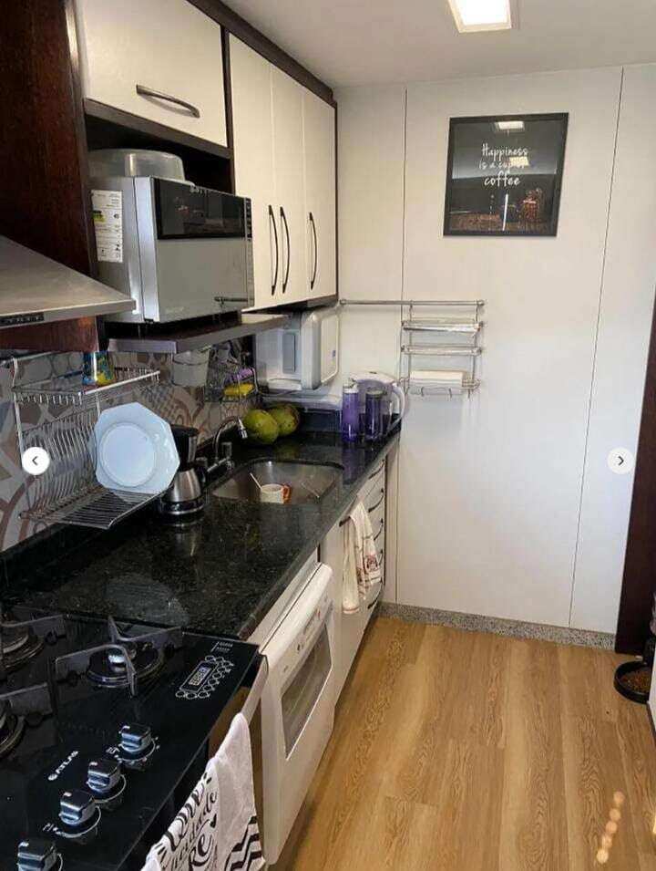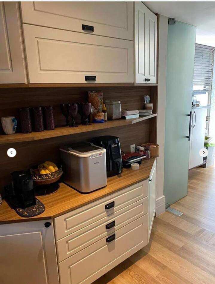 Armários planejados na cozinha, nos quartos e nos banheiros.