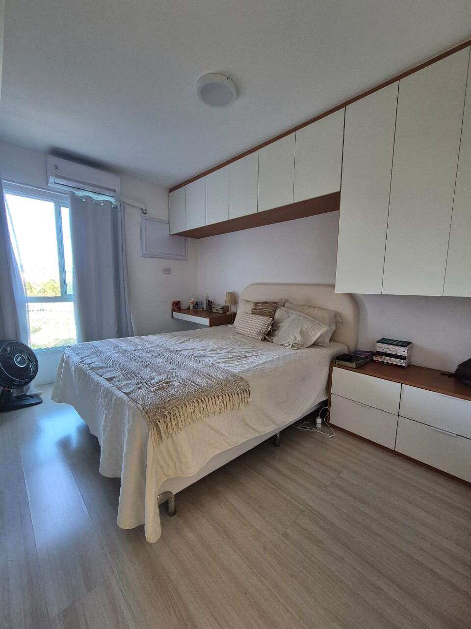 Armários nos quartos, cozinha e banheiros.