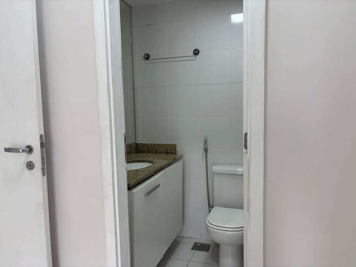 Apartamento de 78 m², 2 quartos, ambos com ar split, sendo 1 suíte com varanda gourmet, sala em 2 ambientes, cozinha planejada, area de de serviço, banheiro social e lavabo, 1 vaga coberta e vagas para visitantes.