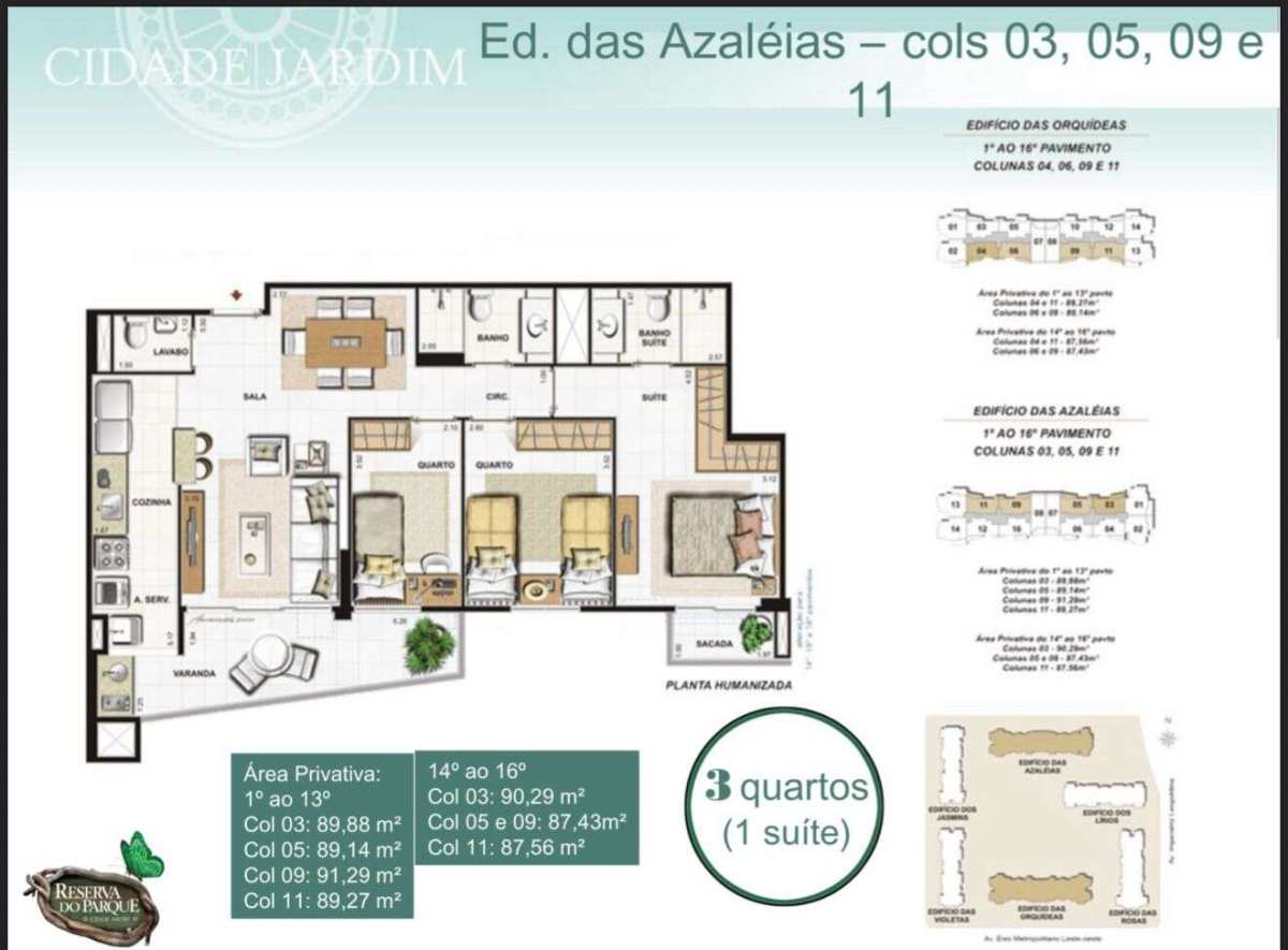 Apartamento 3 quartos, suite, banheiro social, area de serviço, lavabo, sala em 2 ambientes, varanda gourmet, 1 vaga e vagas para visintantes.