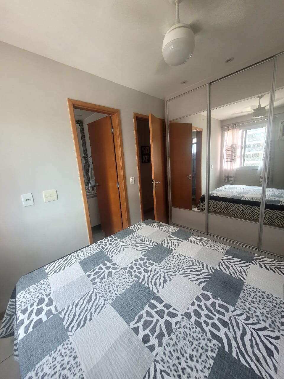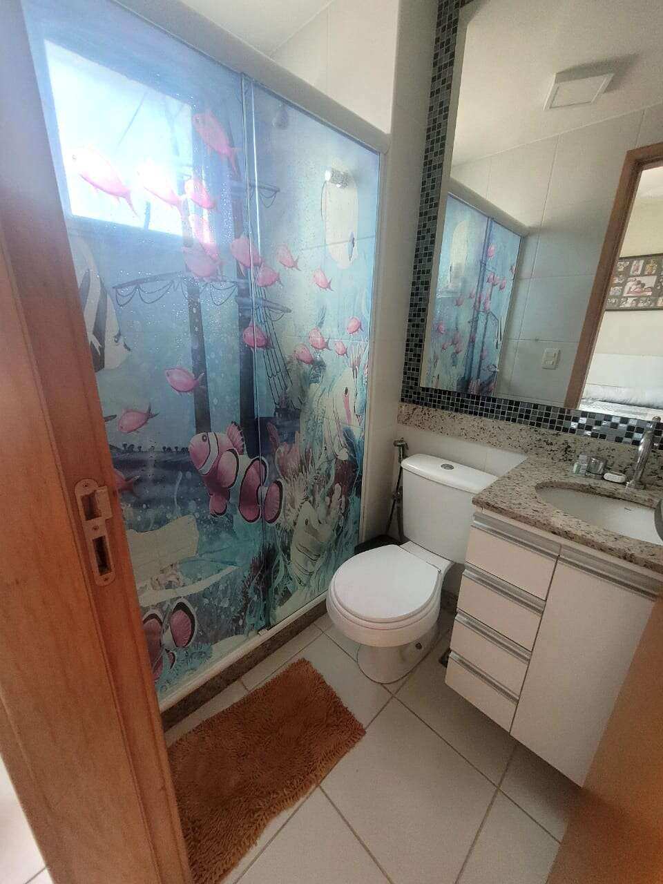 Apartamento de 78 m². 3 quartos, sendo 1 suíte, banheiro social, área de serviço, varanda com rede de proteção.