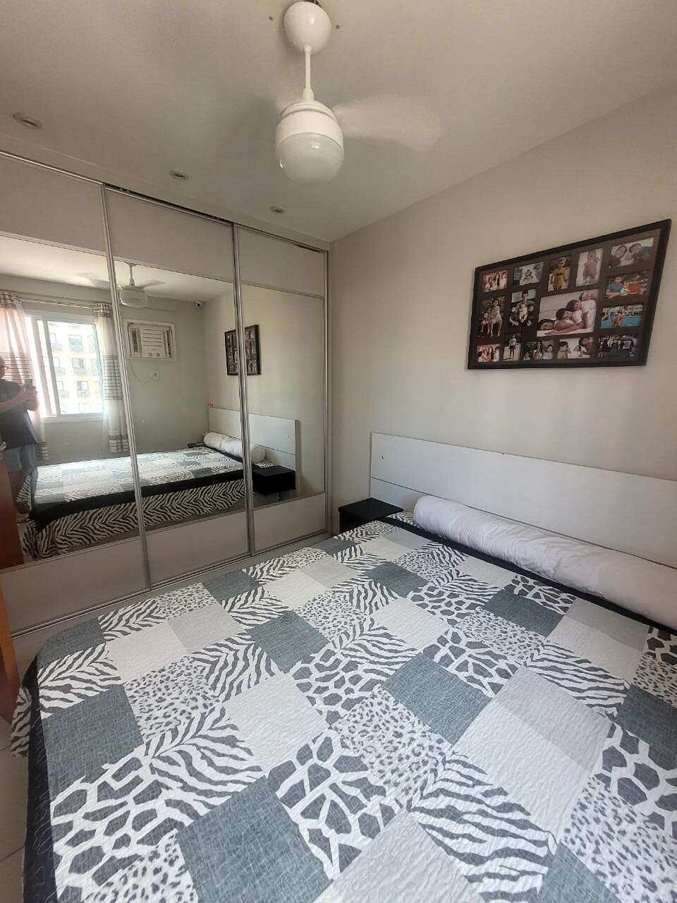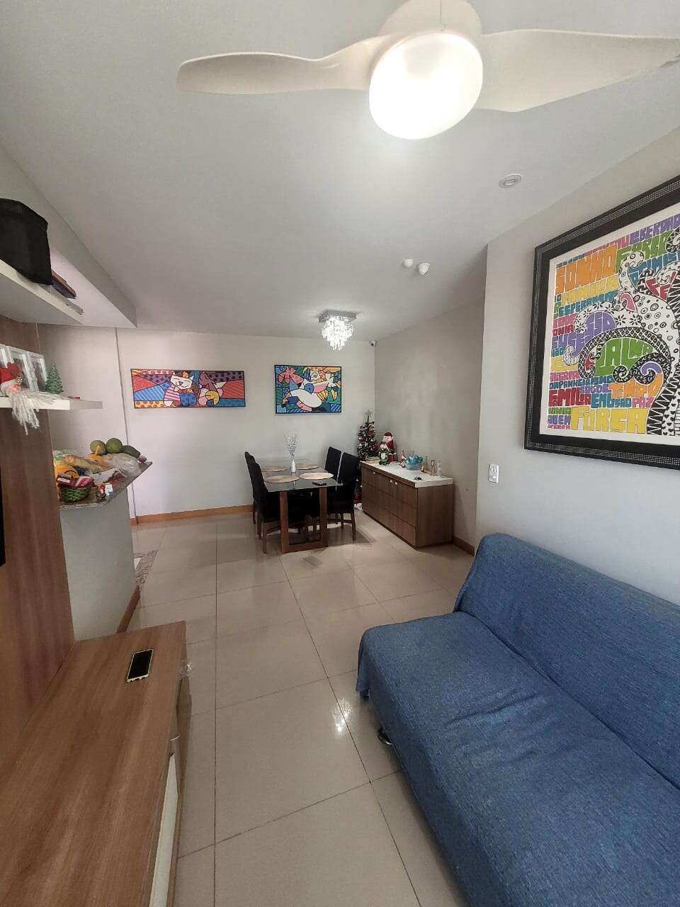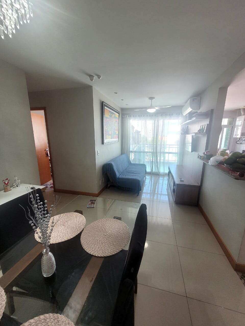 Sala em 2 ambientes com ar Split e ventilador de teto.