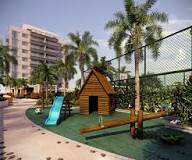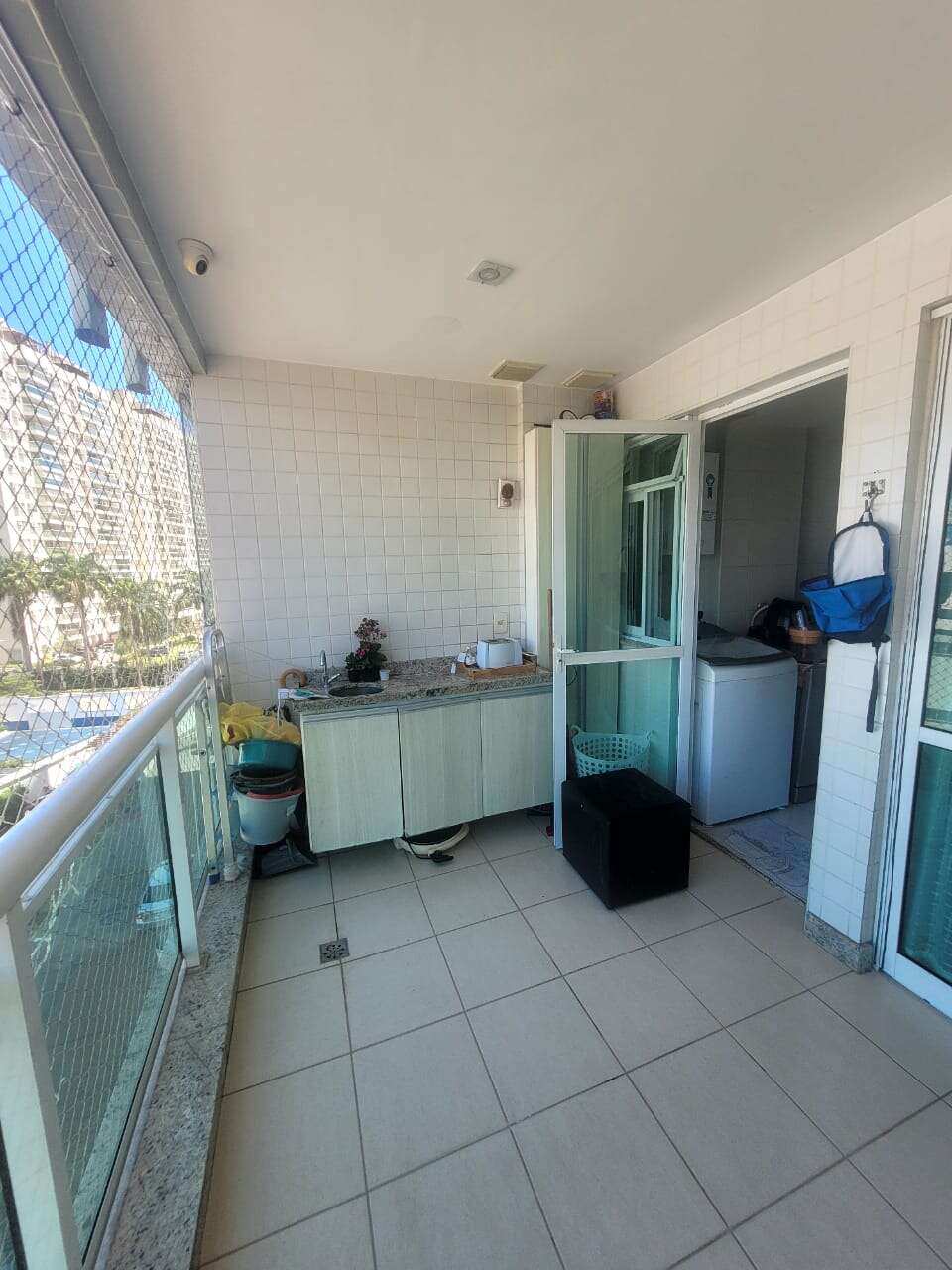 Varanda gourmet com armário com pia de apoio e rede de proteção. Condomínio com infraestrutura de lazer completa e segurança 24 h.