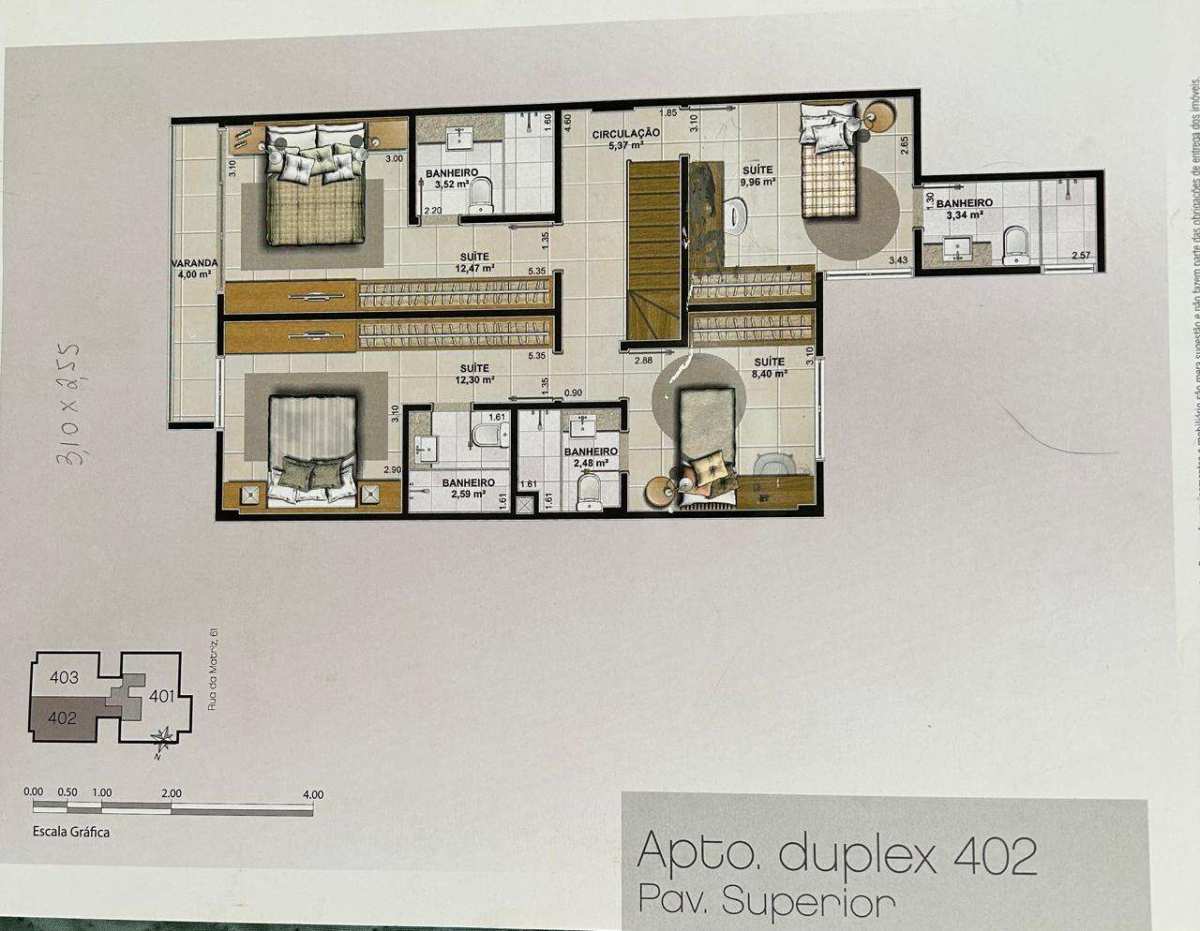 As 4 suítes são no 2º piso.