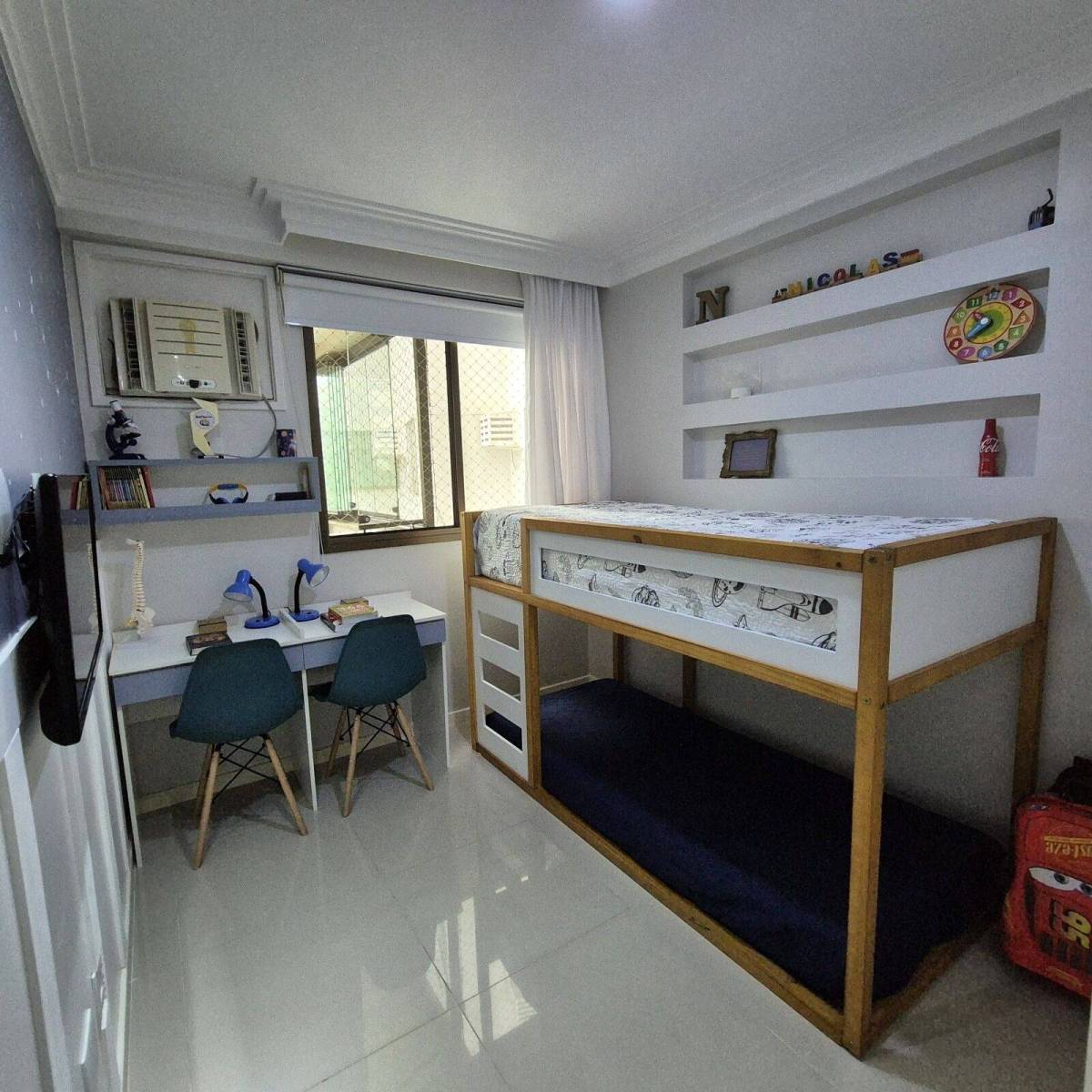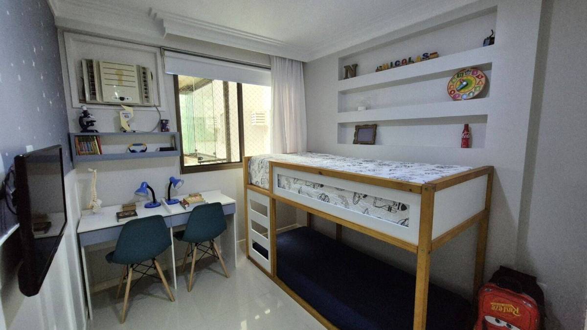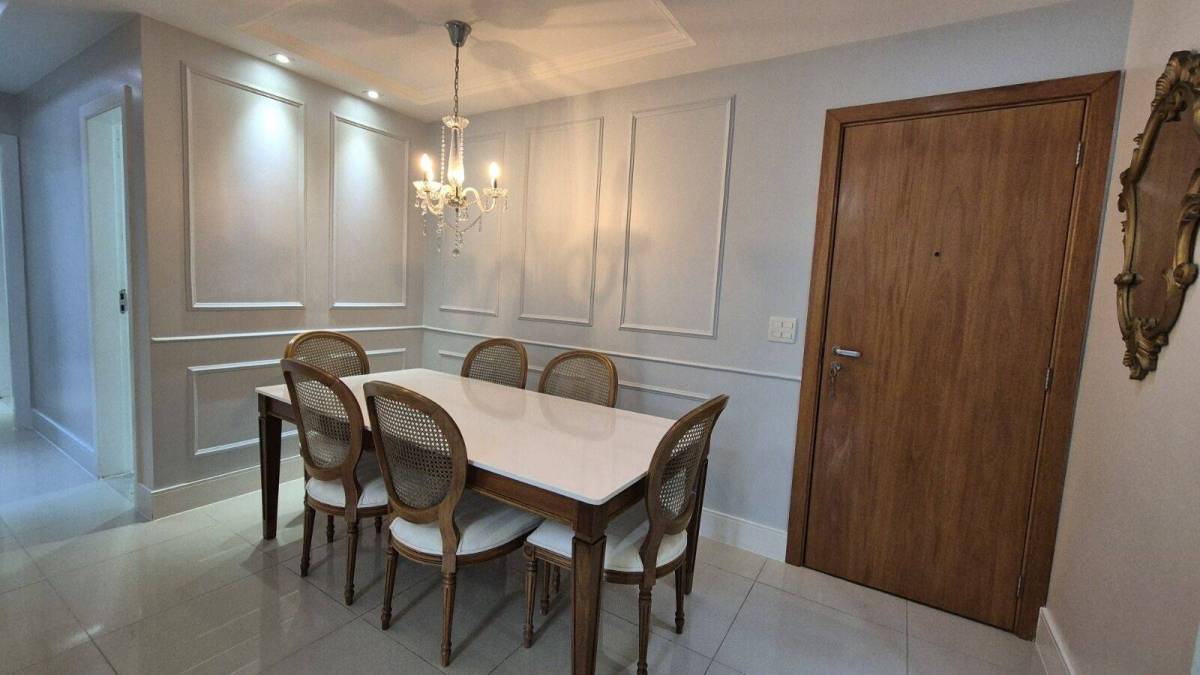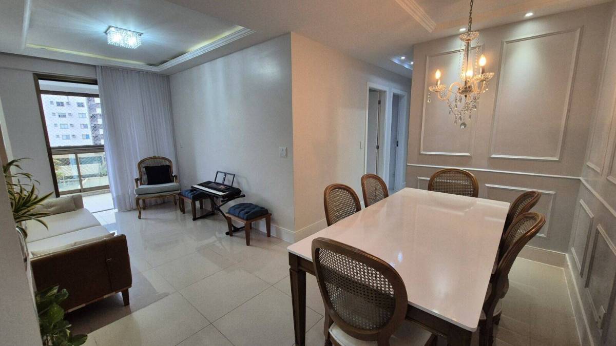 São 93 m² com sala, linda varanda com cortina de vidro, 3 quartos sendo 1 suíte, banheiro social, cozinha planejada com área e banheiro de serviço, 1 vaga coberta.