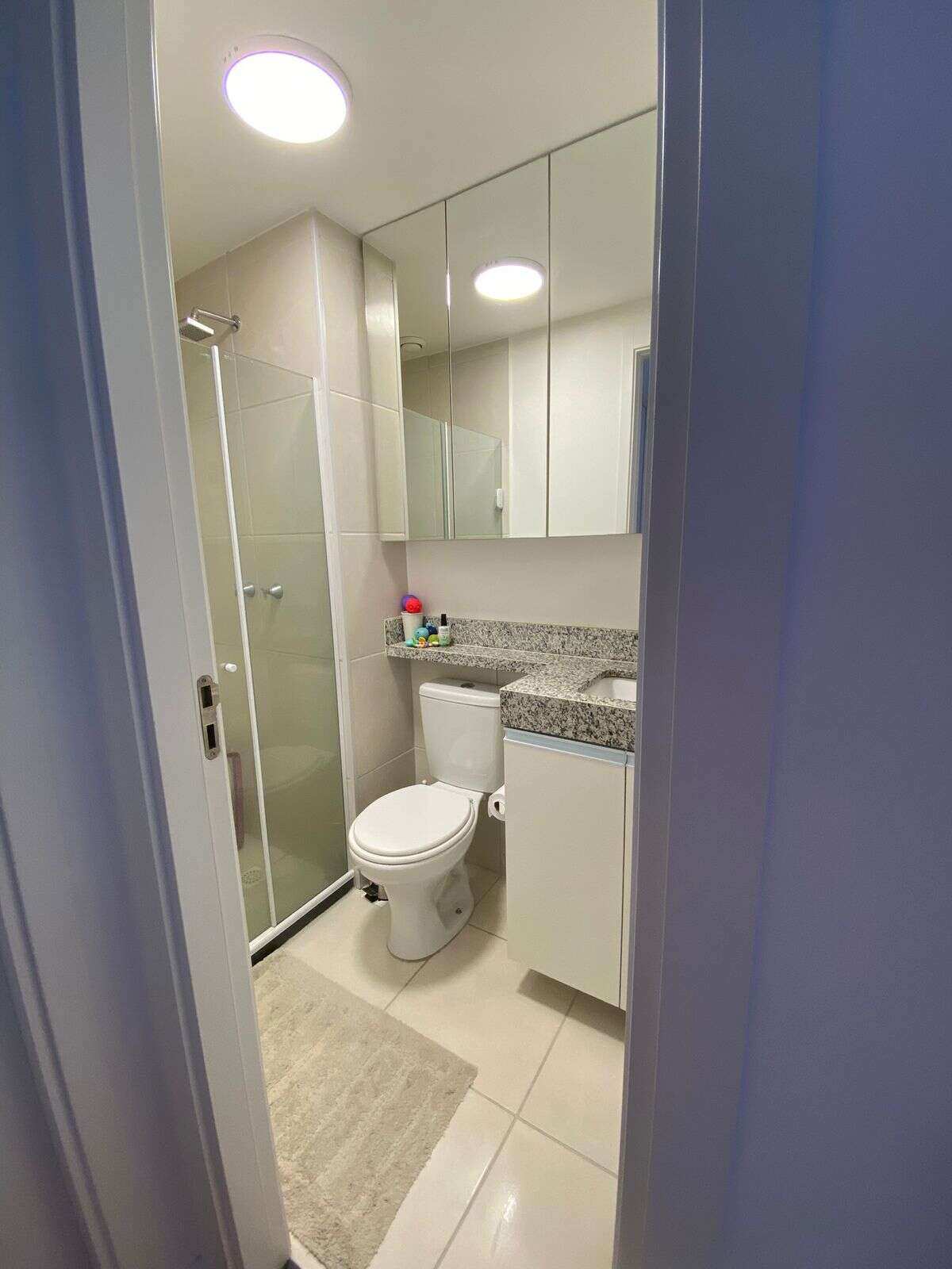 Box blindex, piso frio, andar alto, sol poente, mas o sol não incide direto por conta de um outro bloco, sé passa pela varanda, não entra na sala.