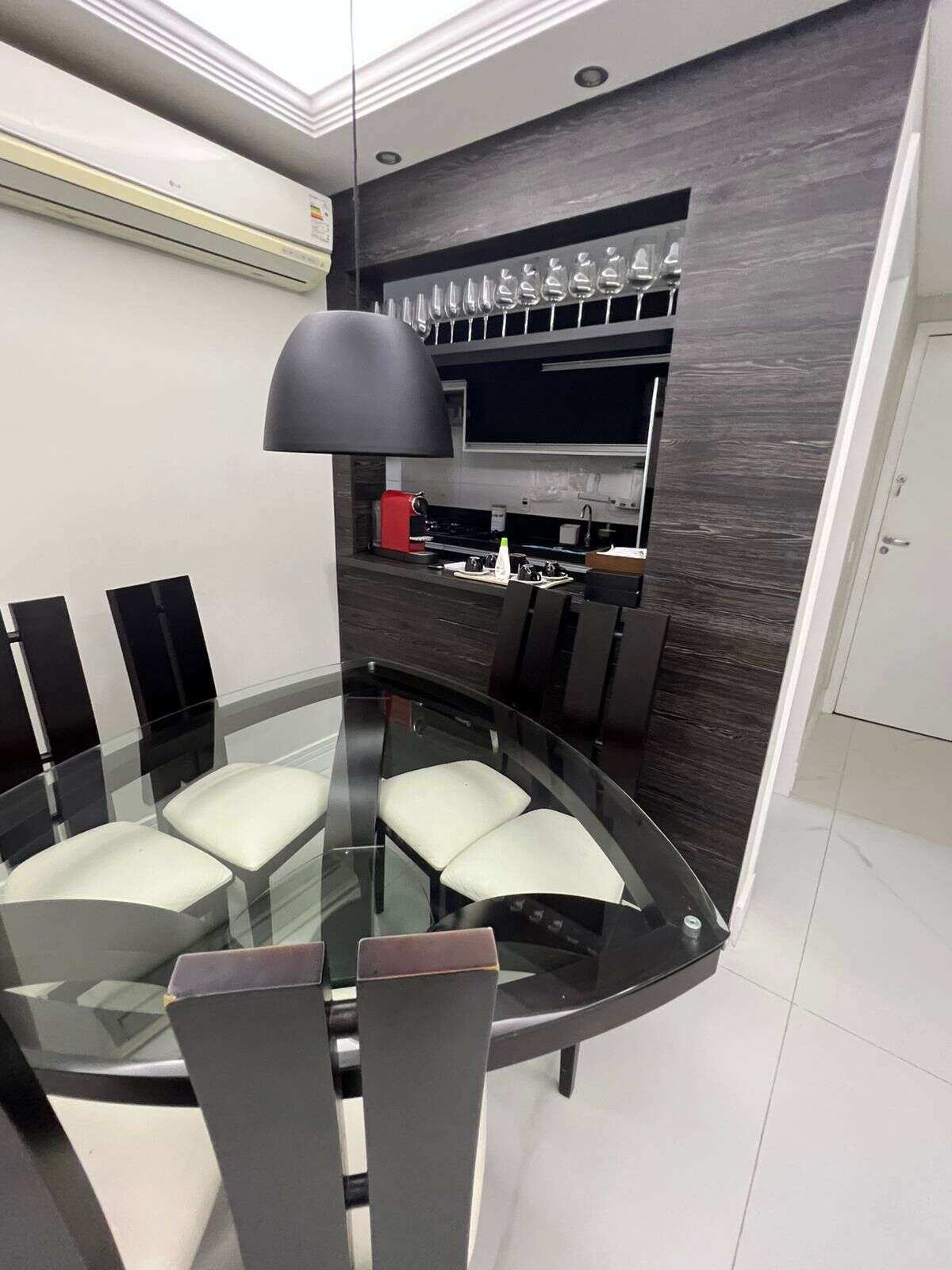 Excelente apartamento totalmente mobiliado com varanda fechada na cortina de vidro, bancada de apoio com pia em inox, sala para dois ambientes. 3 quartos montados , sendo 01 suite , box blindex e armários sob as pias dos banheiros , da suite e social , cozinha planejada. área de serviço separada com tanque, duas vagas de garagem , uma na escritura e outra para visitante.