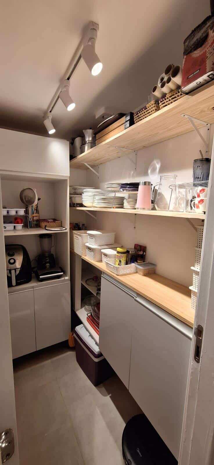 Cozinha planejada com cooktop e despensa.