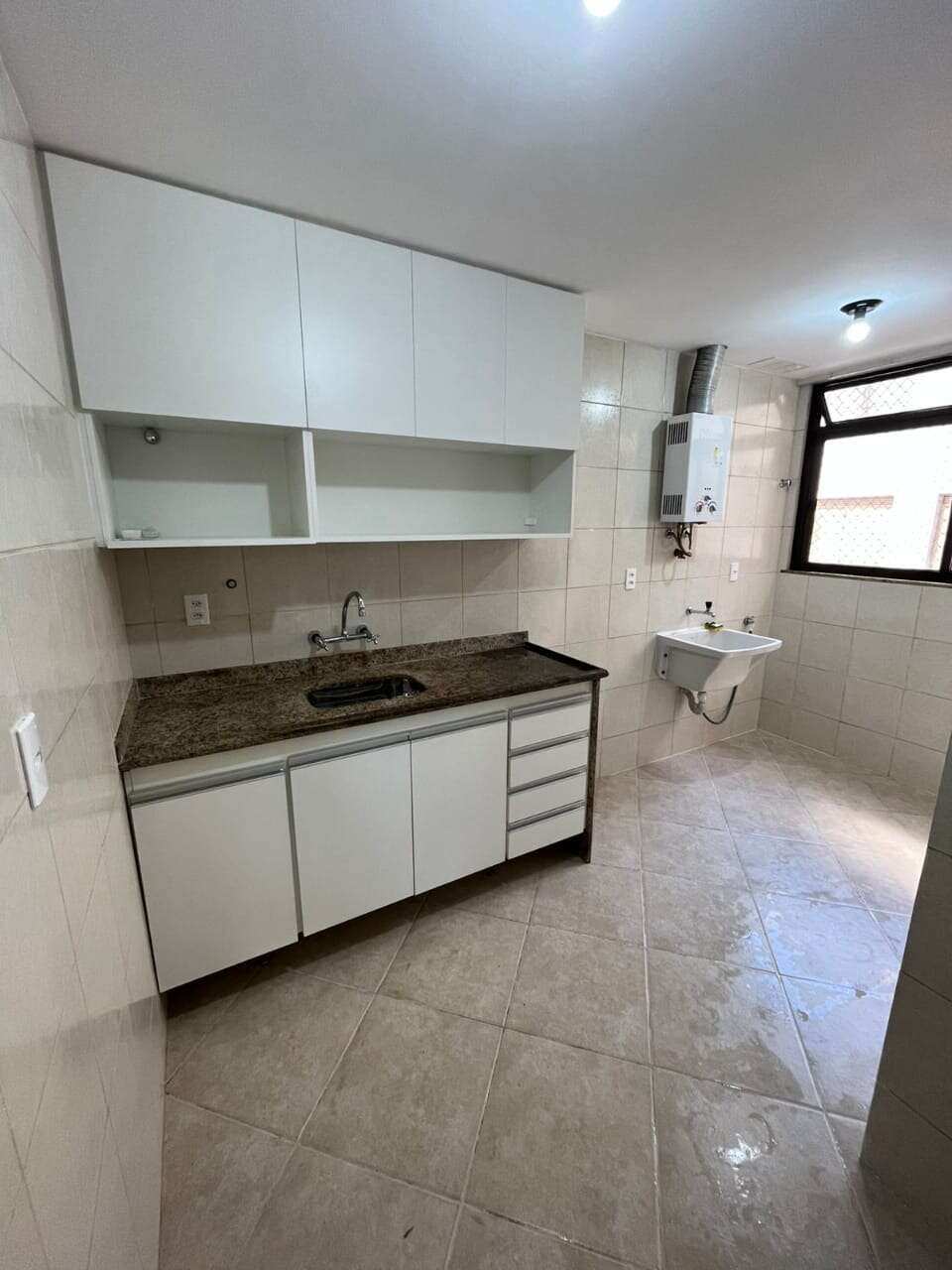 108 m² , piso frio, blindex nos banheiros.