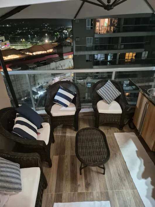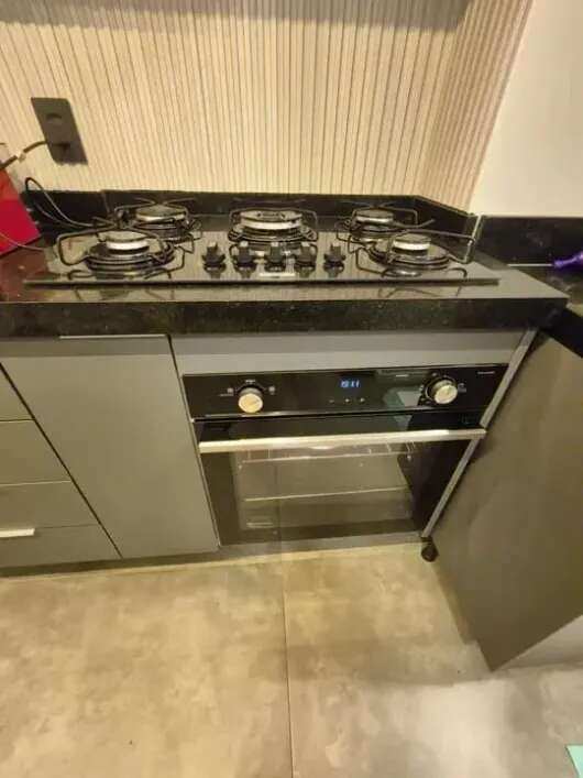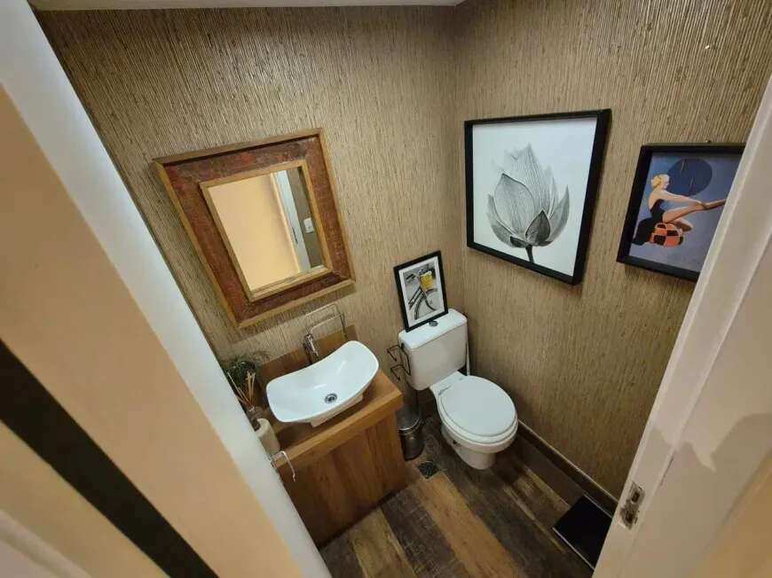 São 102 m² com sala de pe direto duplo em 2 ambientes linda varanda gourmet, 3 quartos sendo 1 suíte, banheiro social e cozinha arejada com área de serviço.