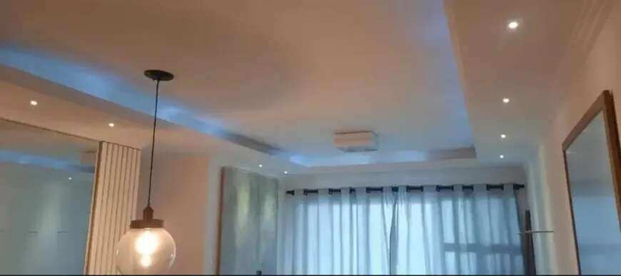 Teto rebaixado em gesso, com projeto de iluminação.