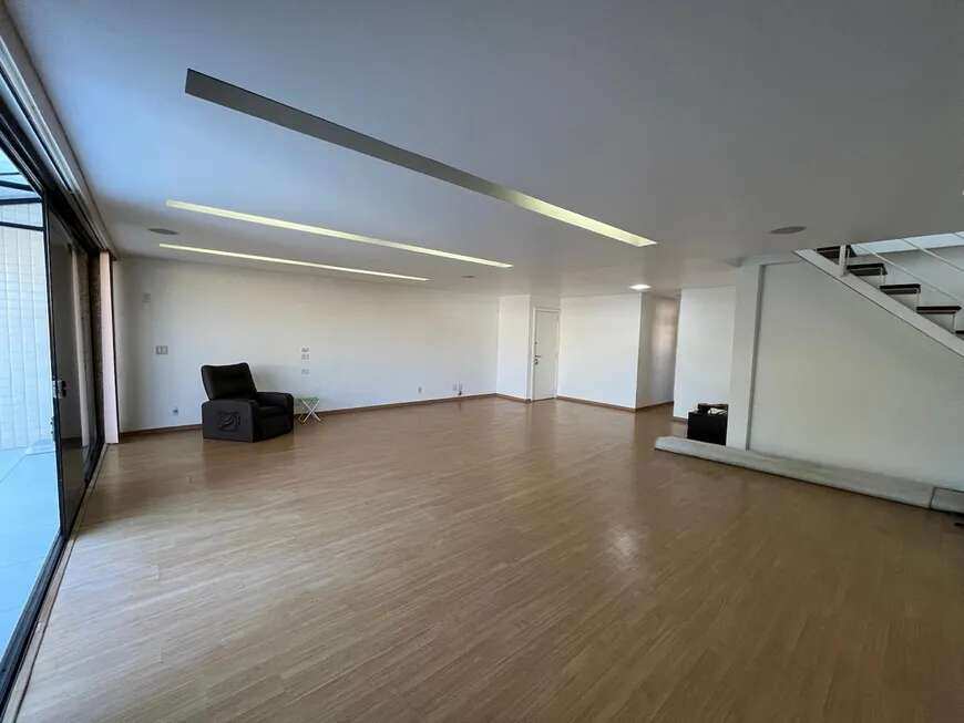 Cobertura duplex de 4 quartos, 320 m ², 3 suites, 6 banheiros, sala em 2 ambientes, 3 vagas cobertas, frontal e sol manhã.
