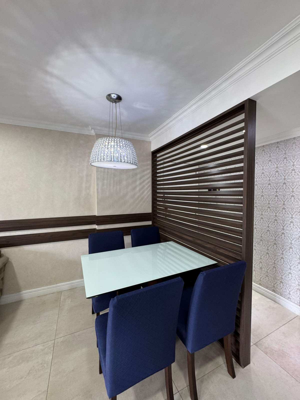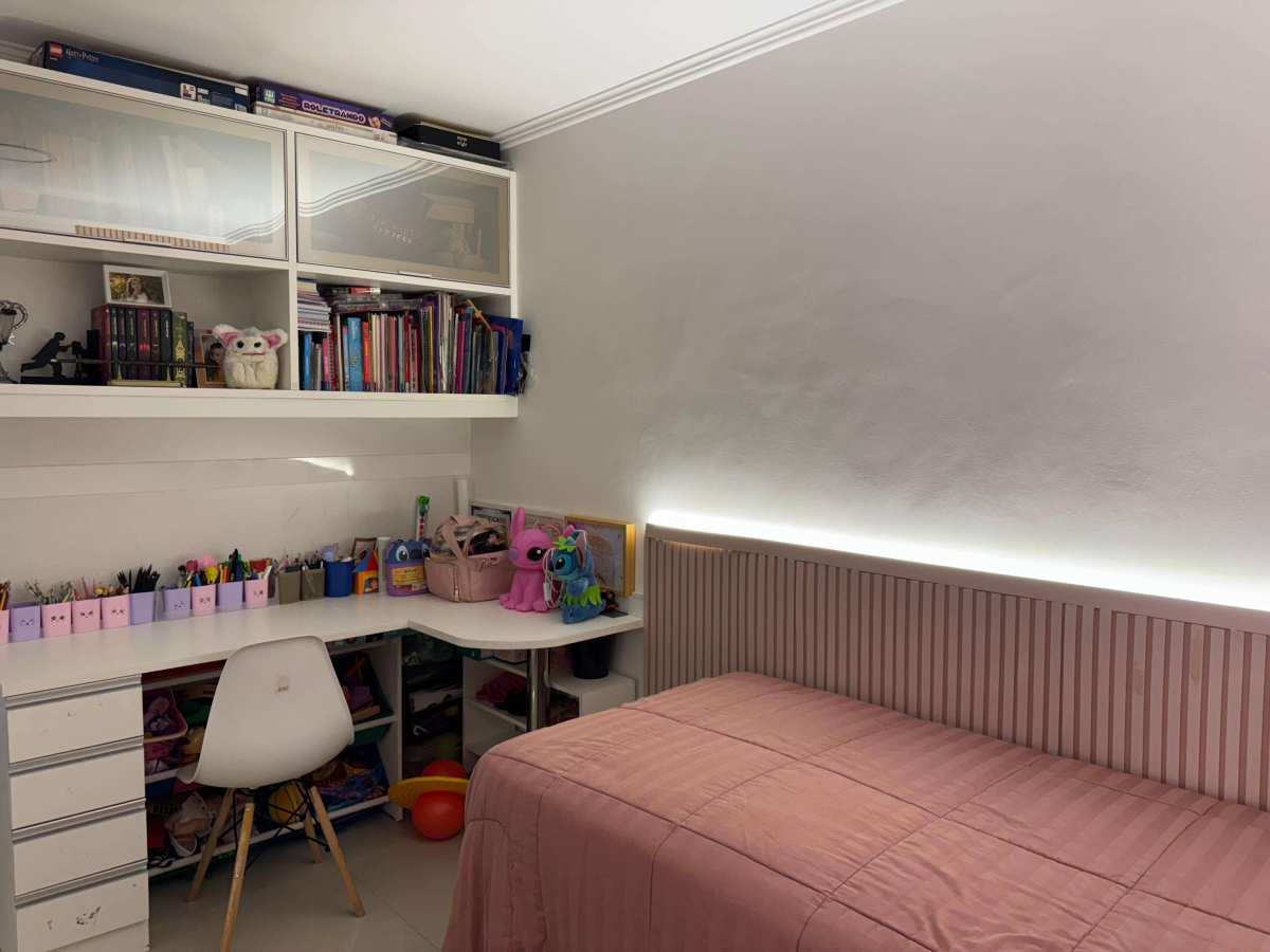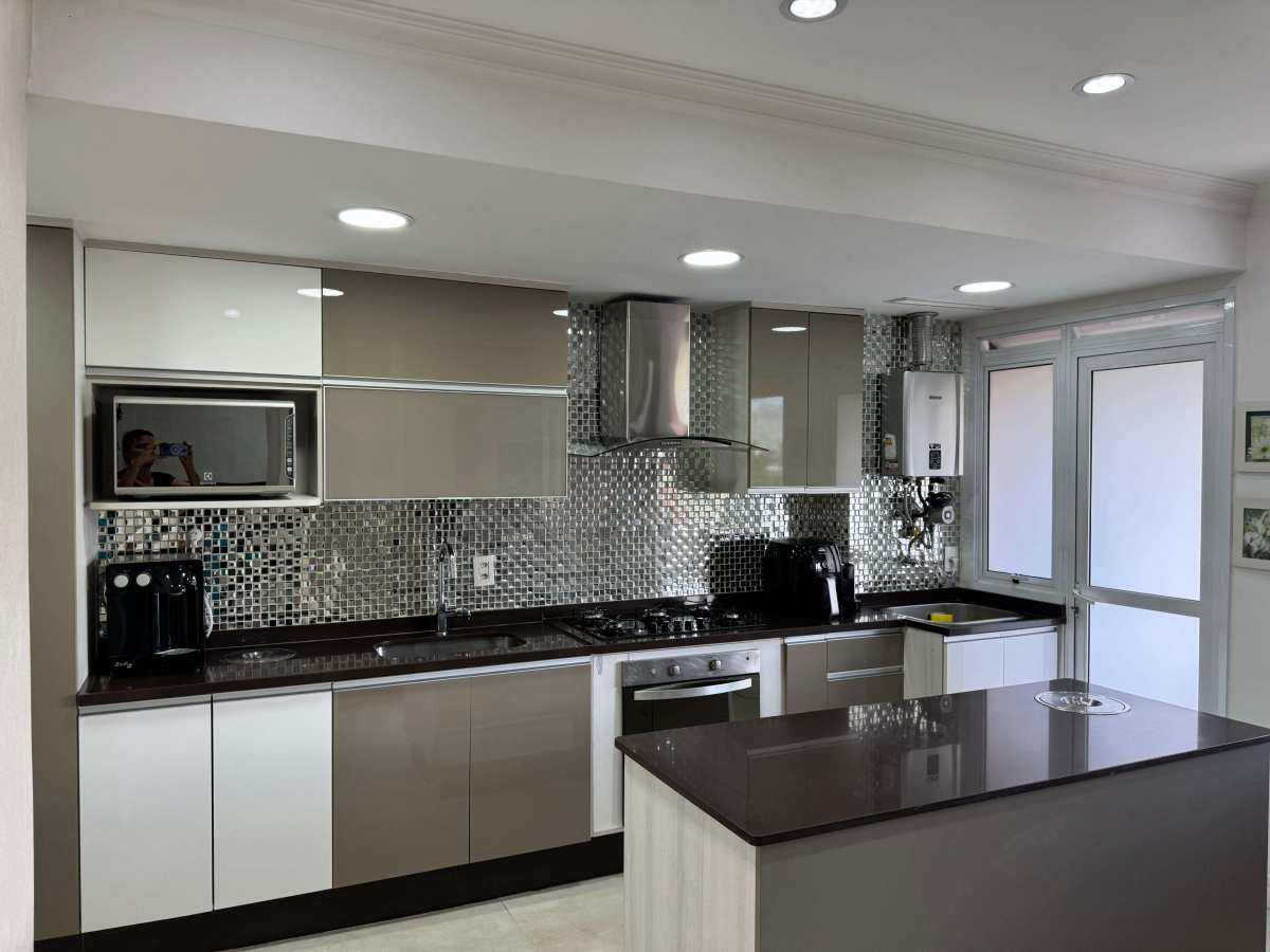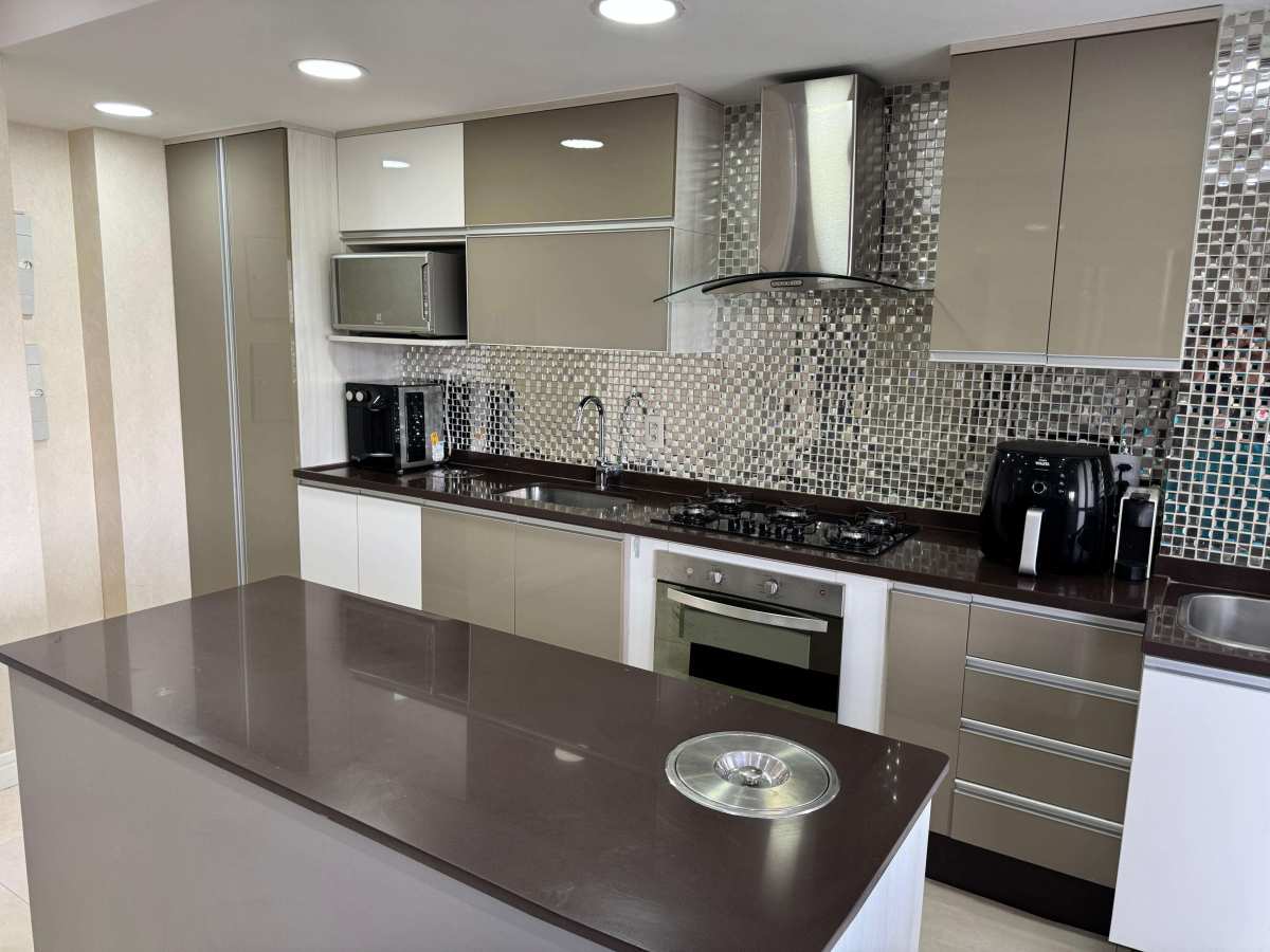 3 quartos, 3 suítes, lavabo, ampla cozinha totalmente planejada, sala em 2 ambientes, varandão, 2 vagas cobertas e vagas para visitantes.