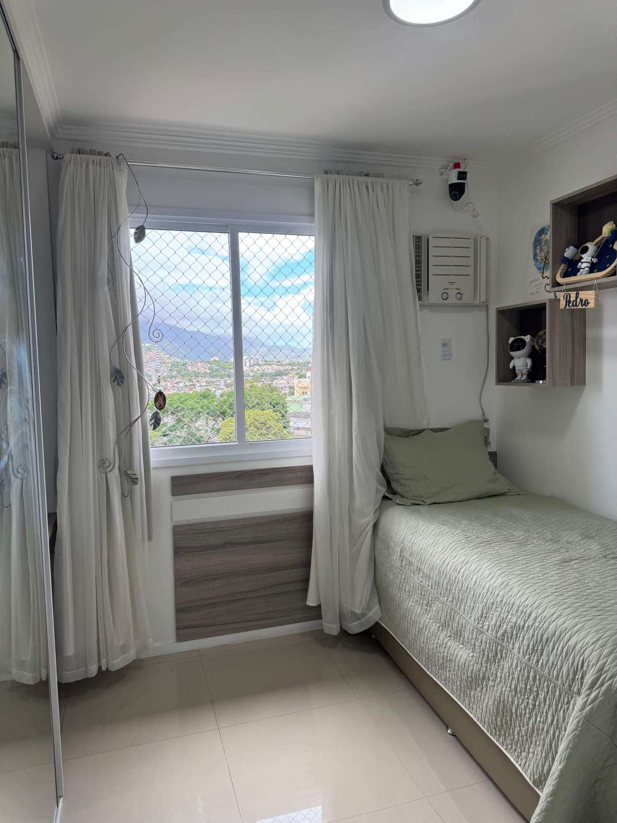 Persianas em todos os quartos.